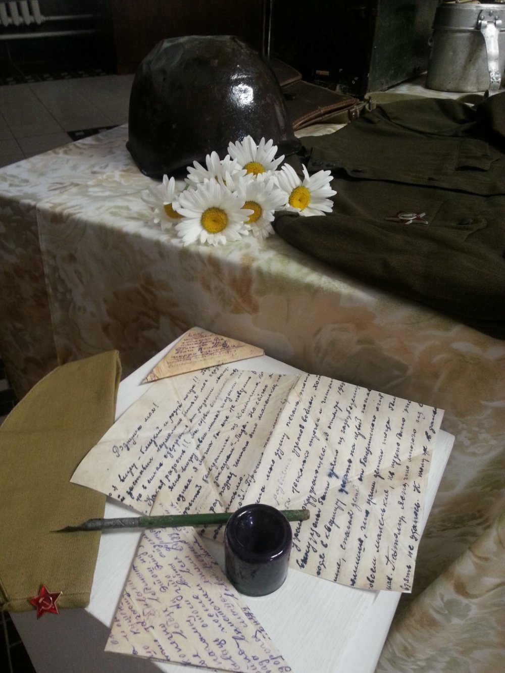 На выставке были представлены экспонаты музея, копии подлинных писем с войны.