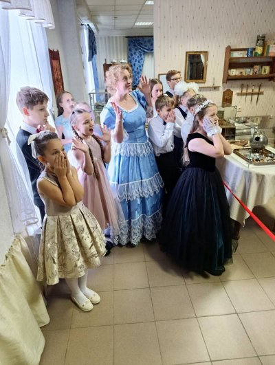 По окончании урока для ребят сотрудники музея провели экскурсию по экспозиции и фотосессию.